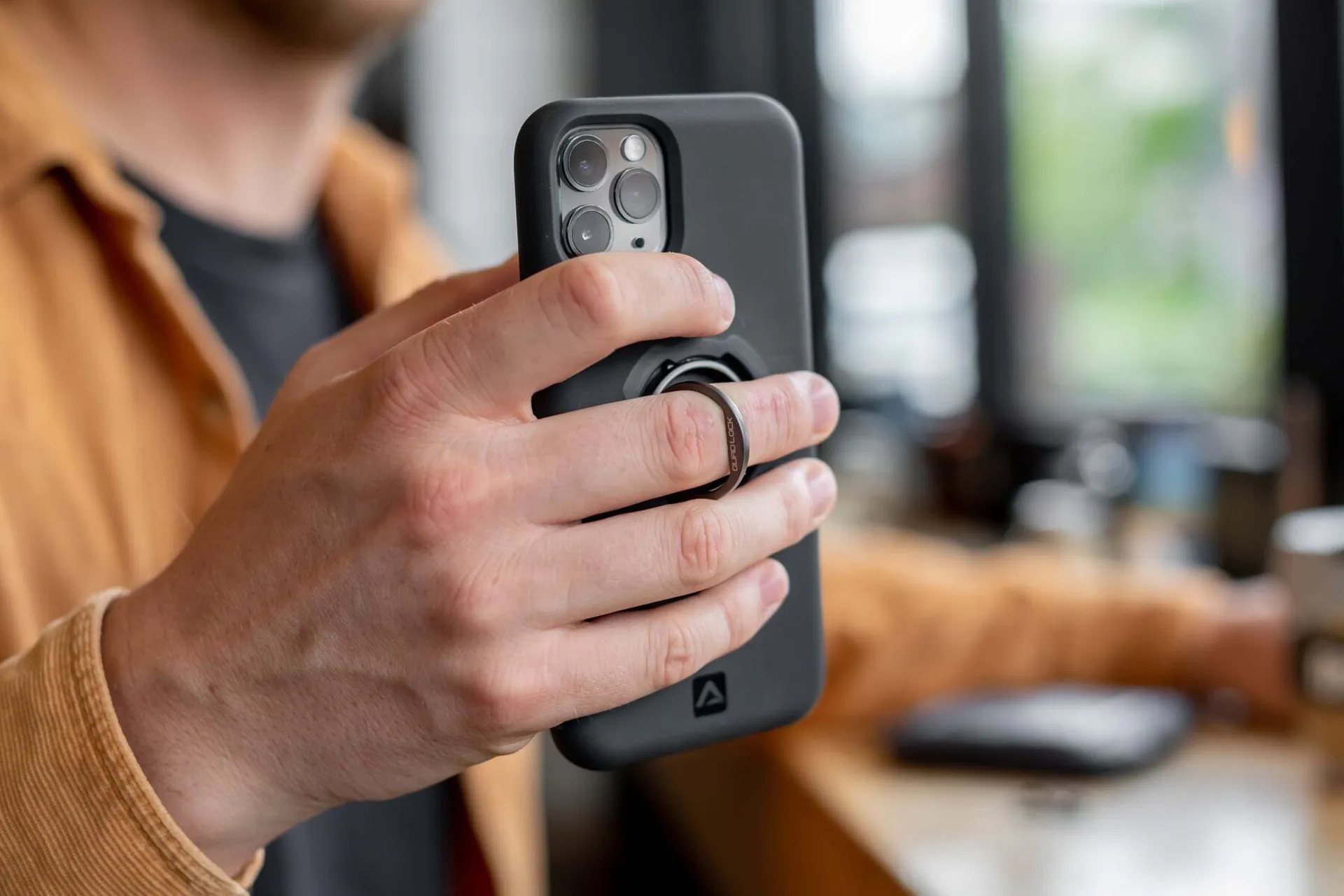 At just 4mm high when fitted, it sits flush against the back of the case or adaptor for a neat and low profile finish. A finger tab makes it easy to remove when needed, and the included aluminium carabiner allows you to keep it close at hand by attaching it to your keys. For best use, it should be removed when using wireless charging or when mounting your phone to another Quad Lock accessory. Built for convenience, versatility and secure everyday use, the Quad Lock Phone Ring Stand V2 is a simple but effective addition to your phone setup.