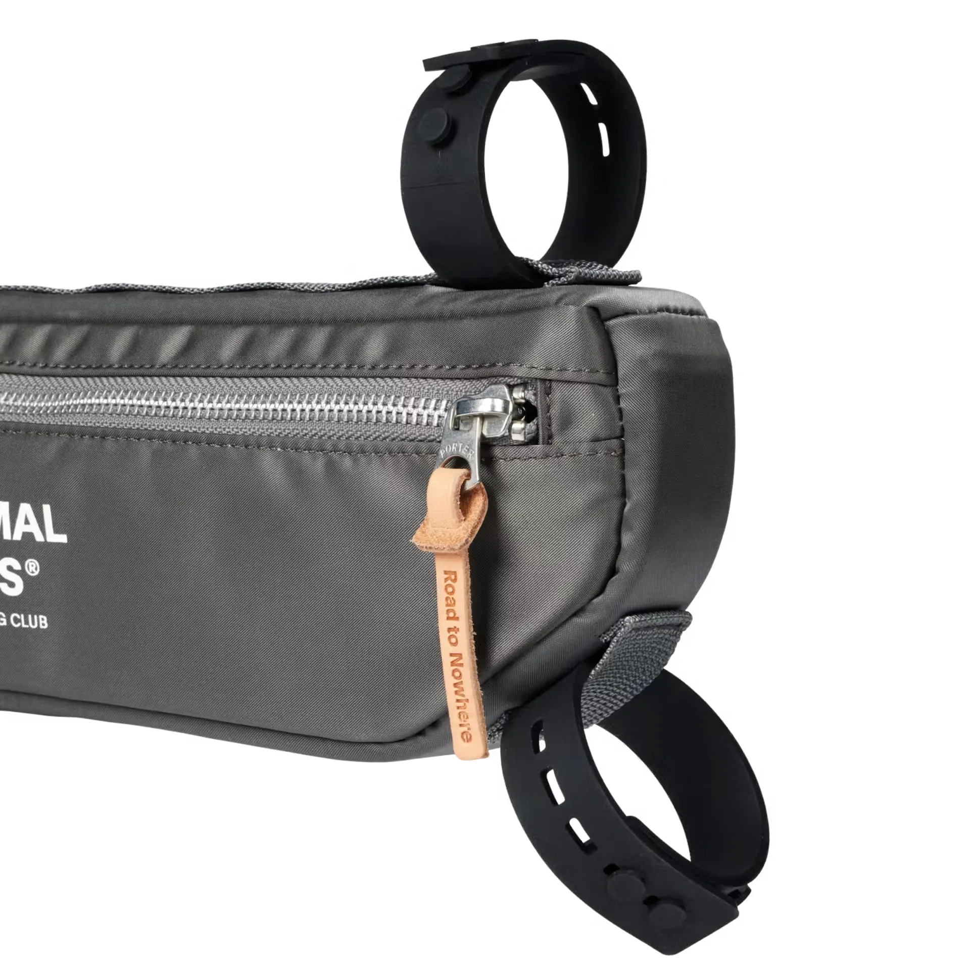 Pas Normal Studios × Porter Frame Bag in Grey – adjustable, water-resistant, and abrasion-proof bike frame bag with internal divider and easy one-hand access. Ideal for adventure, commuting, and everyday cycling.