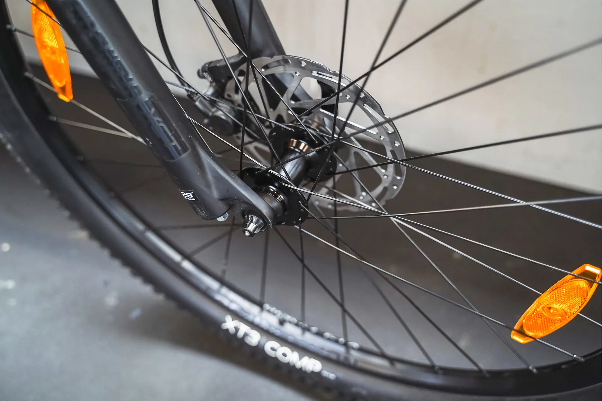 SR Suntour XCE 28 suspension fork with 100 mm travel to smooth out rough terrain
