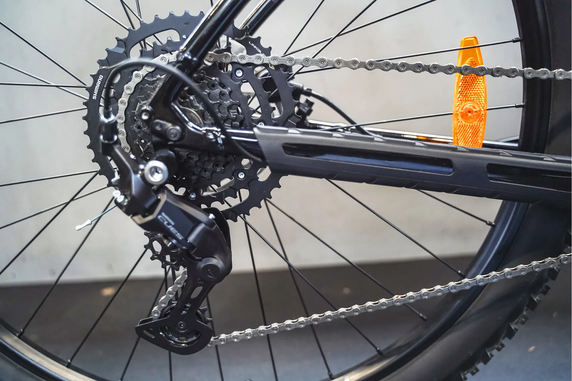 Shimano CUES 9-speed drivetrain for reliable shifting and a wide gear range