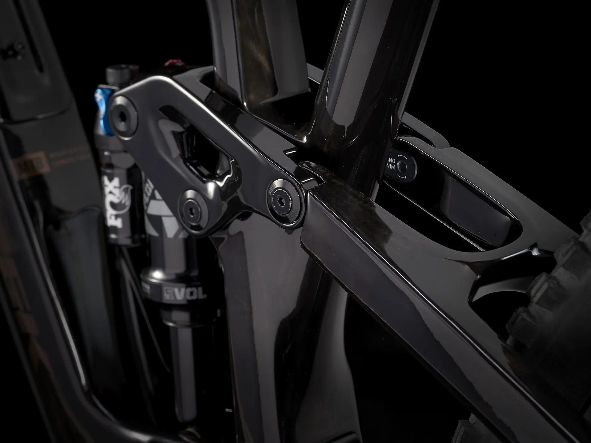 OCLV Mountain Carbon, internal storage, angle-adjust headset, Mino Link adjustable geometry, adjustable leverage rate, guided internal routing, magnesium rocker link, 34.9 mm seat tube, ISCG 05, 55 mm chain line, BSA 73, downtube guard, shuttle guard, ABP, UDH, Boost148, 140 mm travel