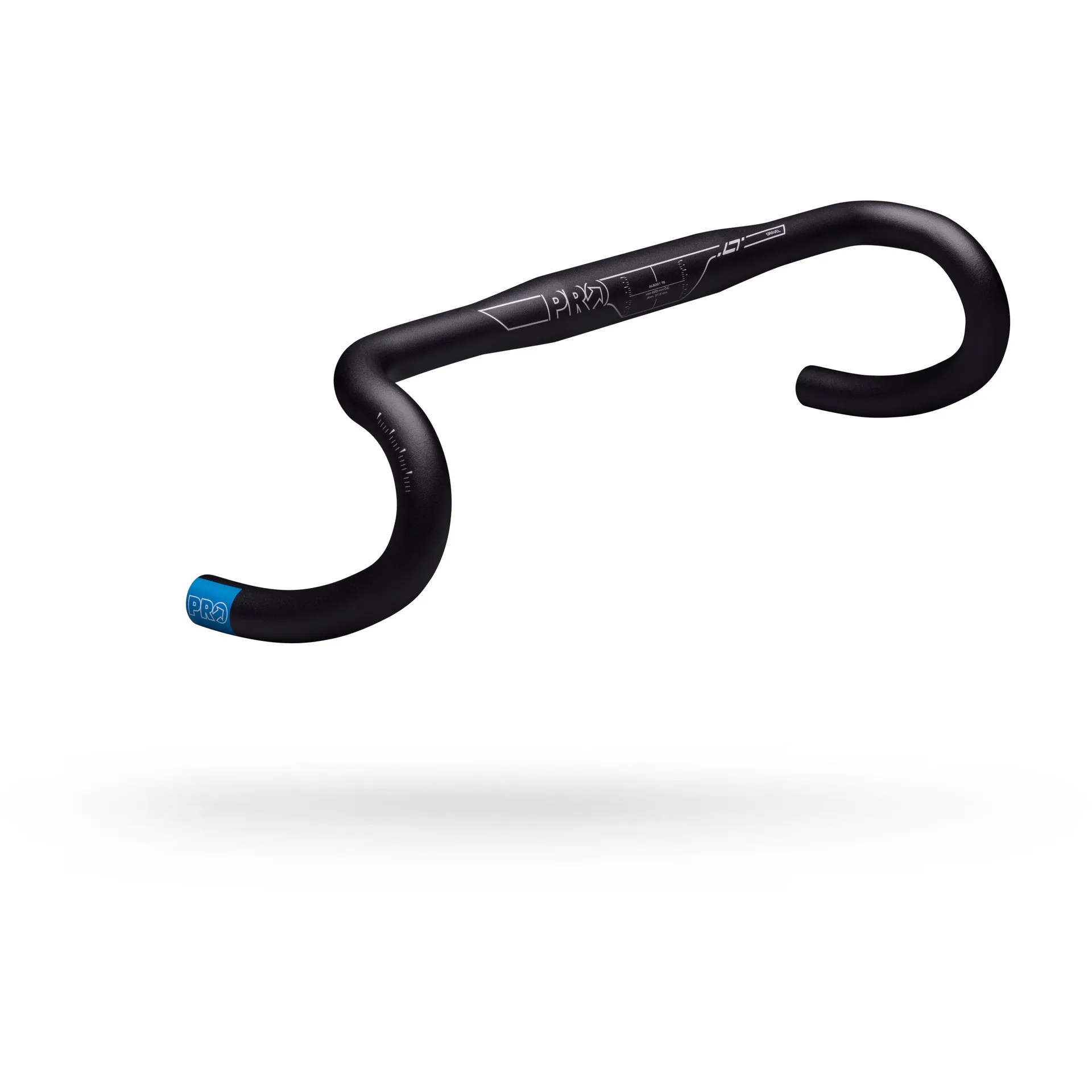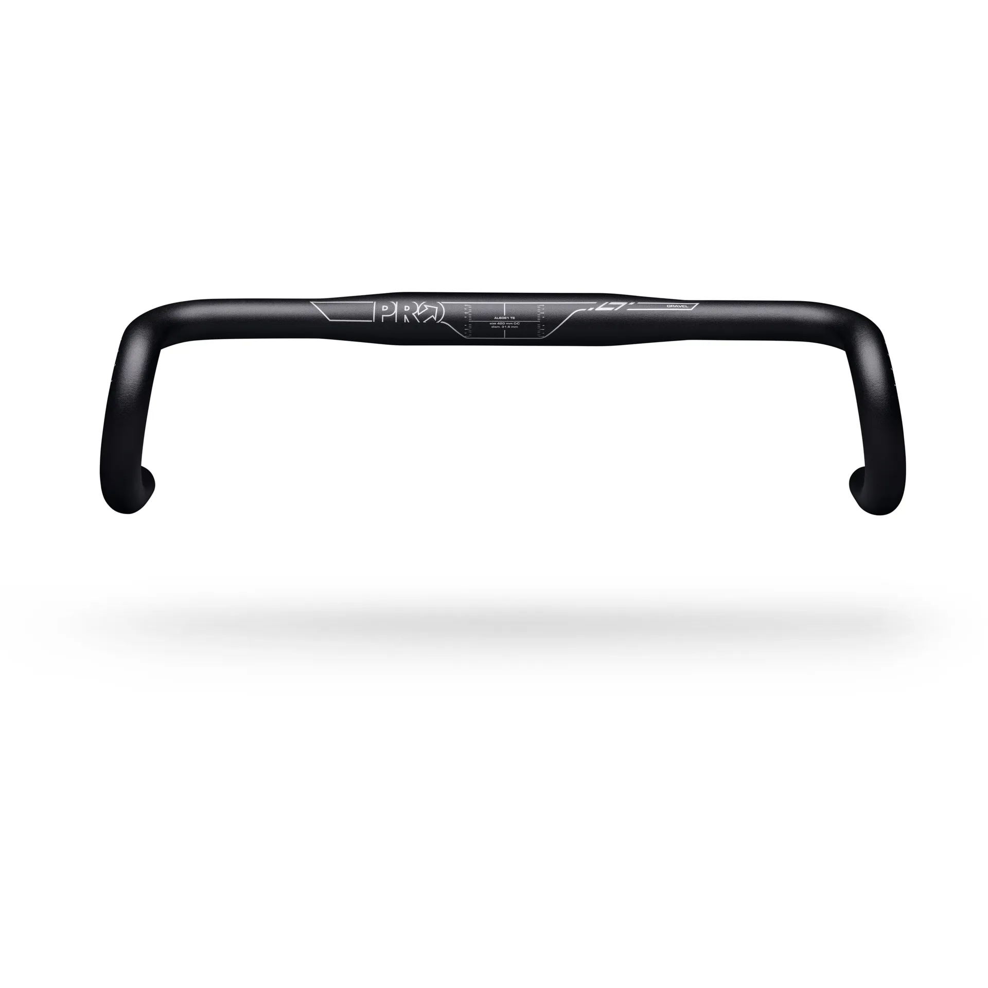 PRO LT Alloy Gravel Handlebar 31.8mm with 10 degree flare, AL-6066 alloy construction, compact 110mm drop and 65mm reach for enhanced control and comfort on gravel rides and racing.
